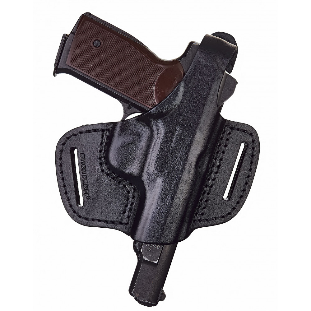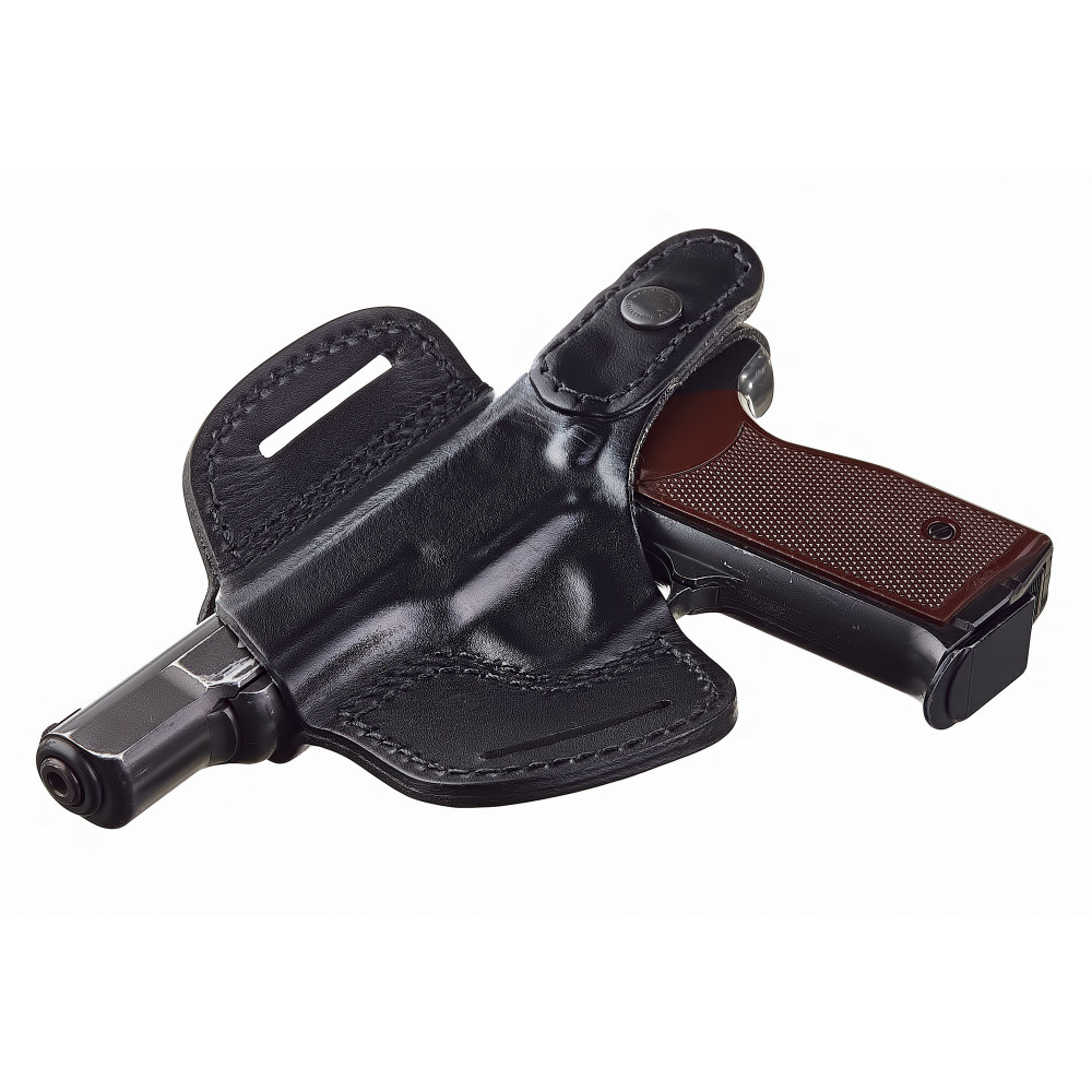 Два уха, через которые проходит ремень максимально прижимают кобуру с пистолетом к поясу, что делает пистолет практически незаметным даже с легкой одеждой. Ширина прорезей в «ушах» на кобуре по умолчанию рассчитана на максимально широкий ремень, то есть офицерский или «портупейный», шириной 50 мм. Но по желанию покупателя может быть изменена под более узкий ремень.