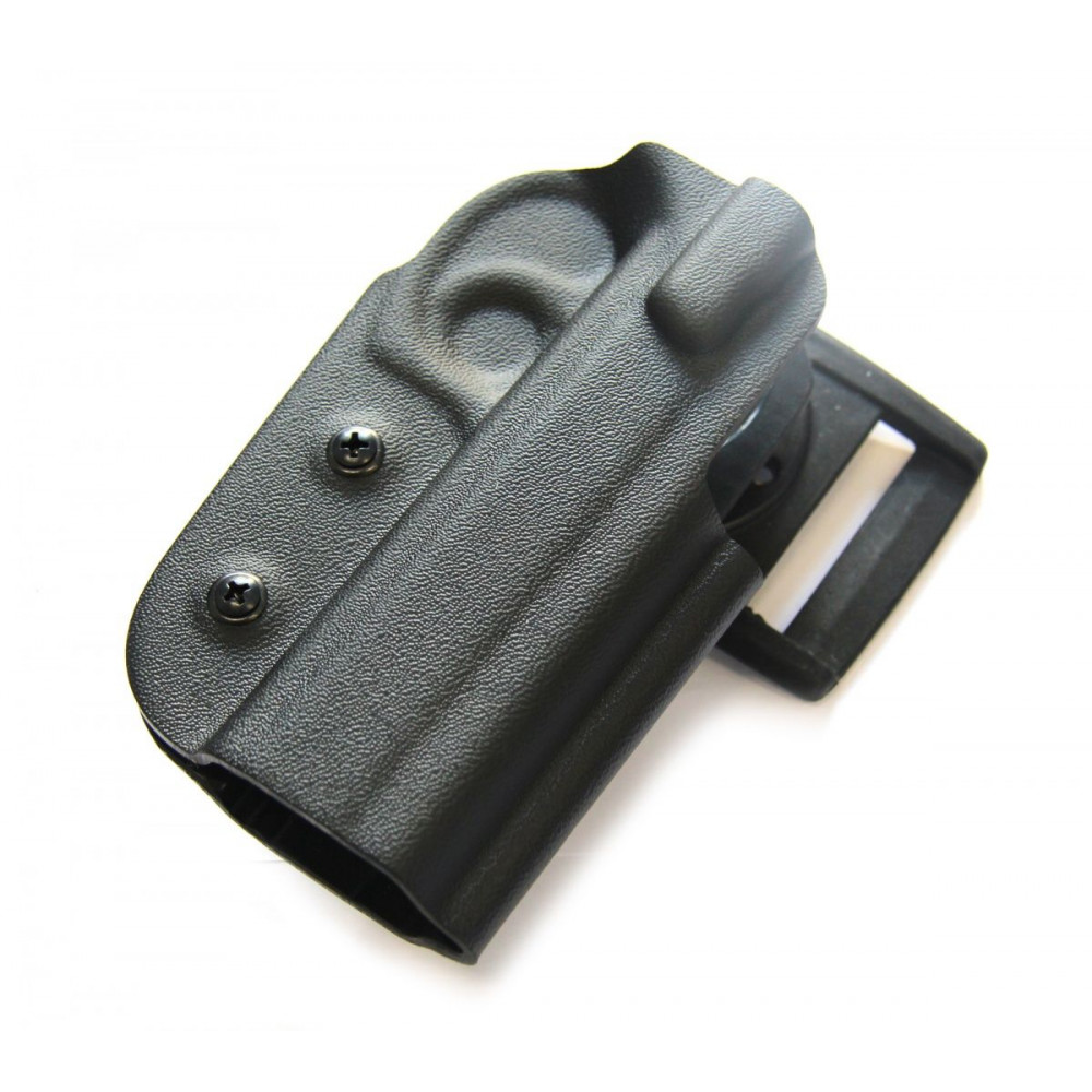 Пластиковая кобура для пистолета СZ-75 SP-01. Изготовлена методом горячего вакуумного формирования из листа термопластичного полимера по матрице, повторяющей габаритные размеры пистолета. Конструкционные особенности, применяемые материалы и метод производства изделия являются гарантией должной фиксации, а также простого и быстрого извлечения пистолета (в сравнении с изделиями из кожи). Изделие имеет регулировку усилия удержания пистолета при помощи двух регулировочных винтов, скрепляющих половины кобуры. Оборудовано поясным крепежом; крепление обеспечивает жёсткую и надёжную фиксацию на ремне пользователя. Крепёж имеет зубчатый механизм (т.н. «трещотка») и регулировочно-фиксационный винт – эти узлы позволяют изменять угол наклона изделия. Изделие рекомендовано стрелкам-спортсменам, сотрудникам правоохранительных органов а также всем нуждающимся в пластиковой кобуре под СZ-75 SP-01 с максимально быстрым доступом к пистолету.