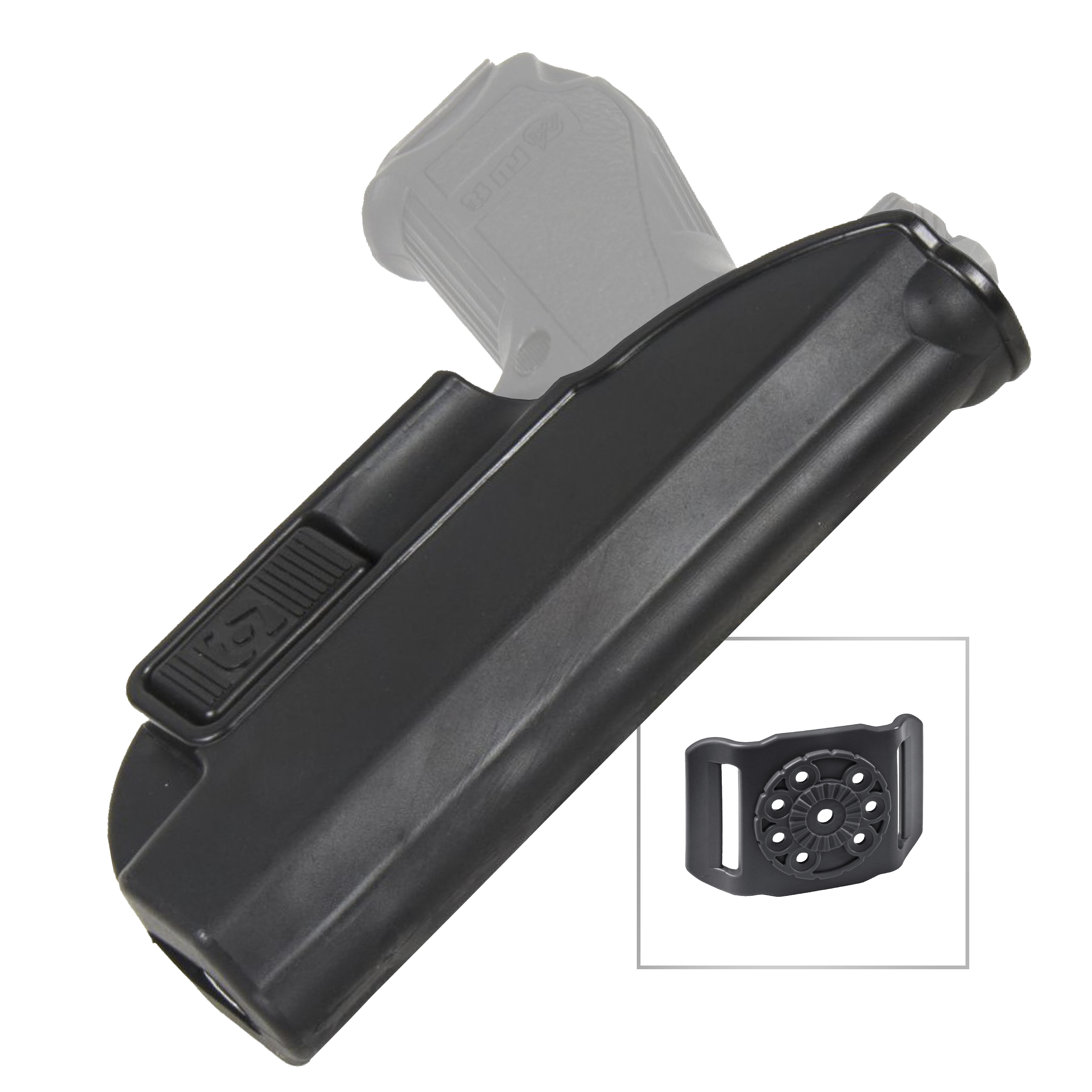 Тактическая кобура Альфа для ГШ-18 из высокопрочного пластика с поясным креплением.