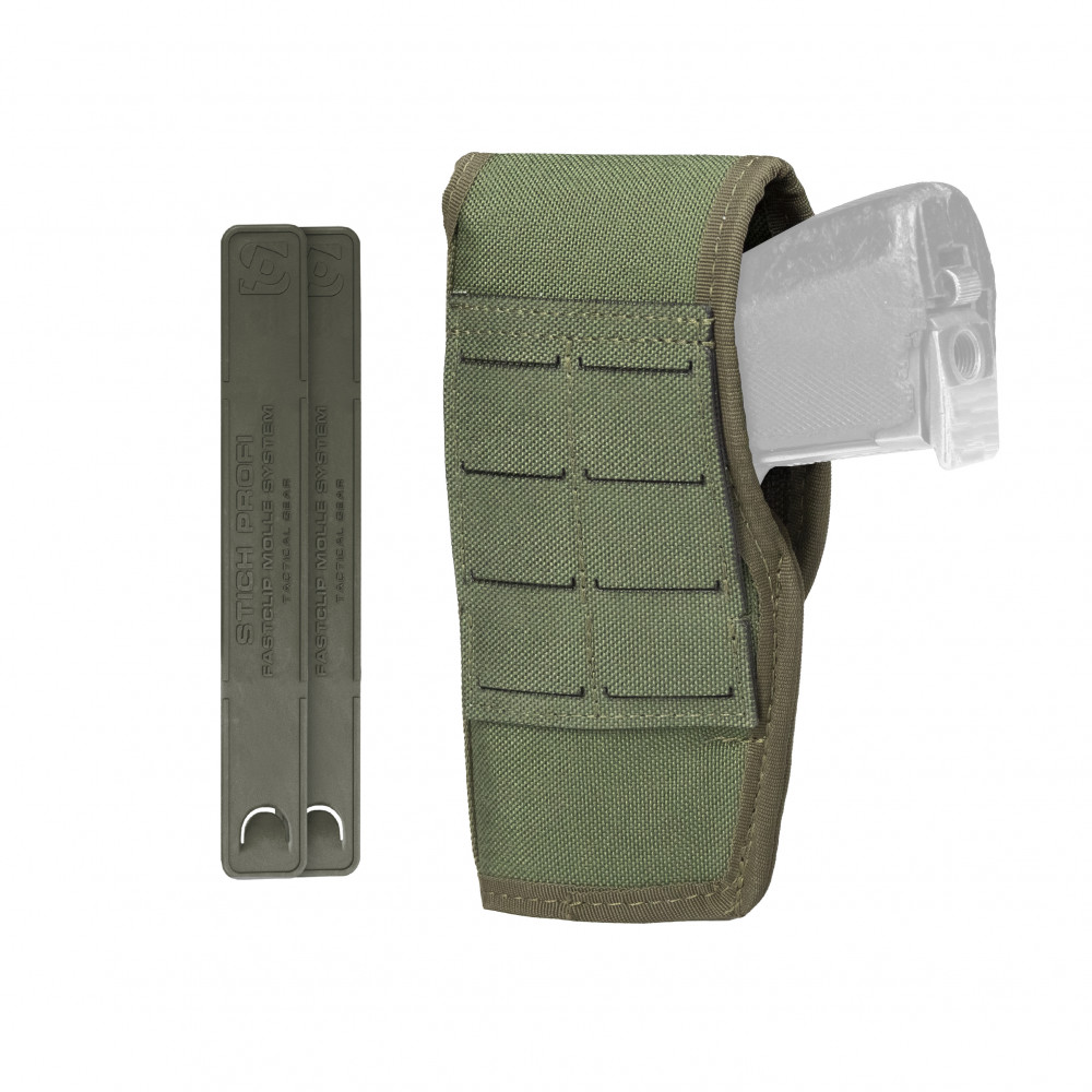 Особенности конструкции позволяют разместить оружие на тактическом снаряжении (бандажах и РПС) по системе MOLLE производства предприятия "Stich Profi".
