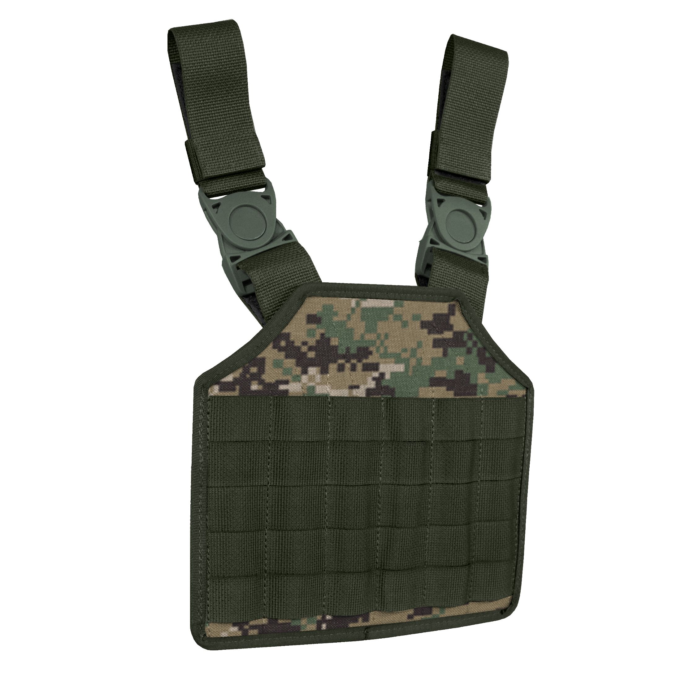 Подвесная система на бедро №2 (molle), универсальная, текстильная, модульно-разгрузочная, оснащенная стропами-ячейками PALs для крепления амуниции и снаряжения. , Назначение: – повышение скорости и комфортности доступа к оружию либо иному необходимому снаряжению, – оптимизация размещения оружия, боеприпасов, тактического и прочего снаряжения для повышения мобильности перемещений и удобства передвижения, – обеспечение равномерного распределения веса амуниции, снижения физических нагрузок на владельца. , Материал: – негигроскопичная, износоустойчивая, высокопрочная синтетическая ткань, – текстильные, особо прочные крепления ременного типа, – высокотехнологичная фурнитура DUE EMME итальянского производства. , Особенности конструкции: Подвесная система на бедро №2 (molle) имеет форму, устройство, габаритные размеры и специфику ременных креплений, гарантирующие надежную фиксацию на теле владельца, вне зависимости от его анатомических параметров, степени активности и особенностей обмундирования. Четыре крепежных ремня (два вертикальных и два горизонтальных) регулируемой длины позволяют добиться плотного прилегания к бедру подвесной системы, даже при значительной весовой нагрузке (кобура с оружием, гранаты, подсумки с боеприпасами и т.д.) и быстрых, резких перемещениях. Удержание элементов вооружения и амуниции непосредственно на подвесной системе гарантируется безупречной функциональностью крепления MOLLE, многократно проверенной в экстремальных режимах эксплуатации. , Удобство размещения тактического снаряжения «первой необходимости» именно на бедре определяется анатомо-физиологическими свойствами человеческого тела: кисть опущенной руки располагается на уровне середины бедра. Минимальное движение в локтевом суставе, и оружие, другой срочно потребовавшийся предмет – в руке. Комфортность ношения подвесной системы достигается не только двумя креплениями к поясному ремню, что обеспечивает более равномерное распределение нагрузки на опорно-мышечный аппарат, но и подвижностью, изменяемым углом наклона платформы (в плоскости параллельной поверхности тела) которую обеспечивает специальная эластичная лента с противоскользящими свойствами и подвижные фастексы. Соединение ременных креплений с MOLLE-платформой осуществляется 4 специализированными пряжками «фастекс», позволяющими в случае необходимости мгновенно отстегнуть подвесную систему.
