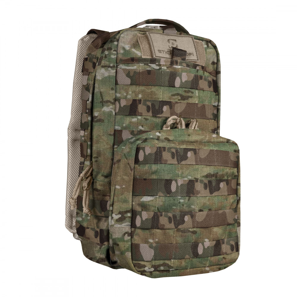 Имеет съемный карман со стропами молле, 2 вертикальных вспомогательных ремня и 2 горизонтальных вспомогательных ремня